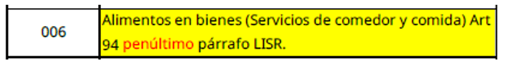 En la clave 006 realiza la referencia correcta a la clave 006 para indicar que se trata del penúltimo párrafo del artículo 94 LISR.