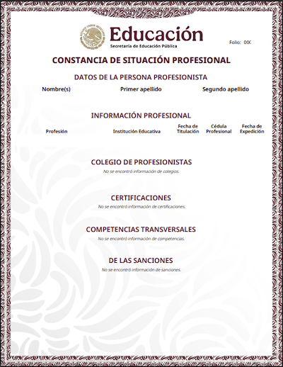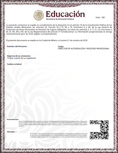 Emitida por la Dirección General de Profesiones (DGP), la constancia incluye: