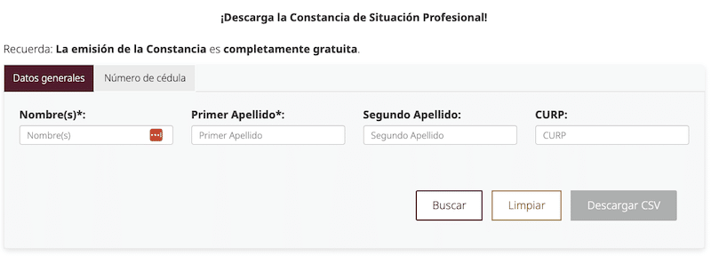 - Captura tu nombre y CURP o tu número de cédula profesional.