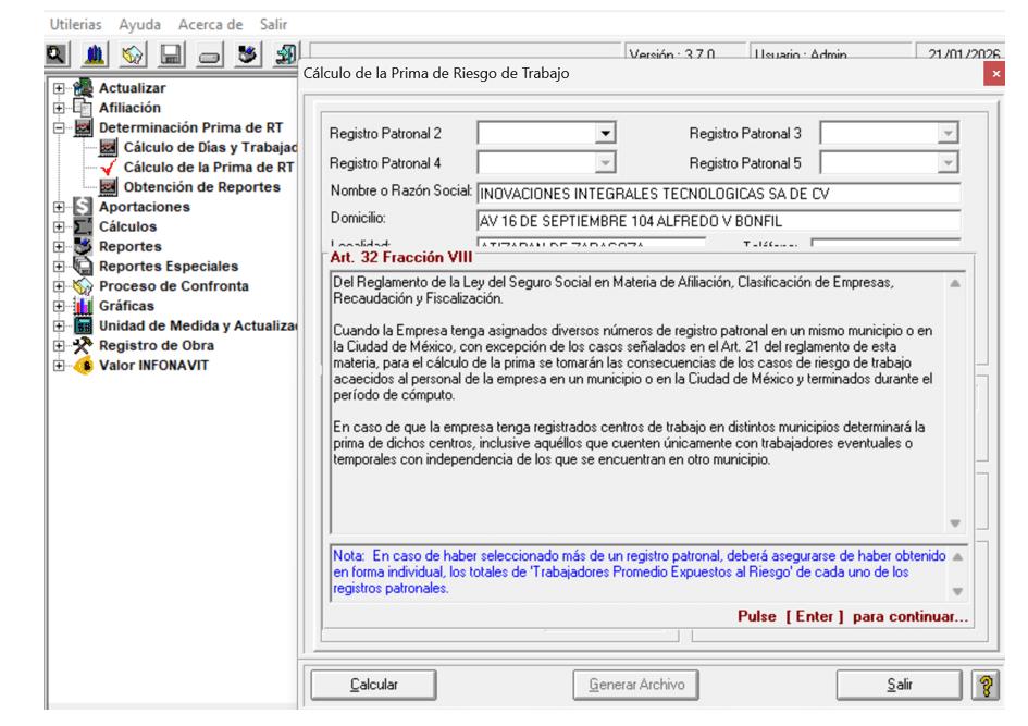- Si el valor coincide, se mantiene la misma prima de riesgo IMSS.